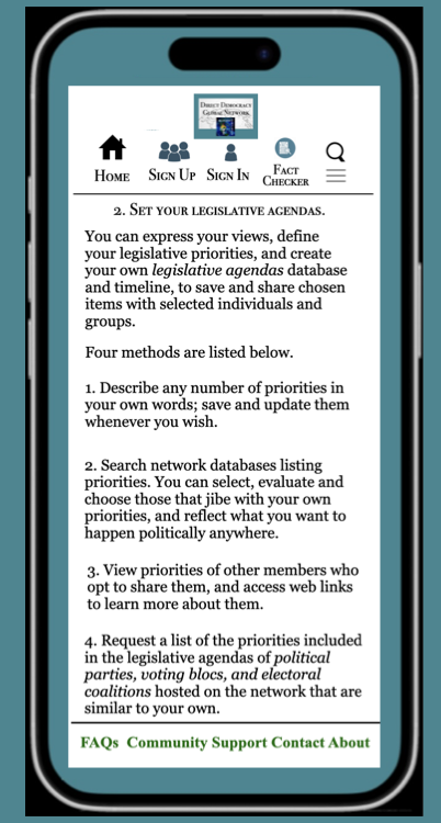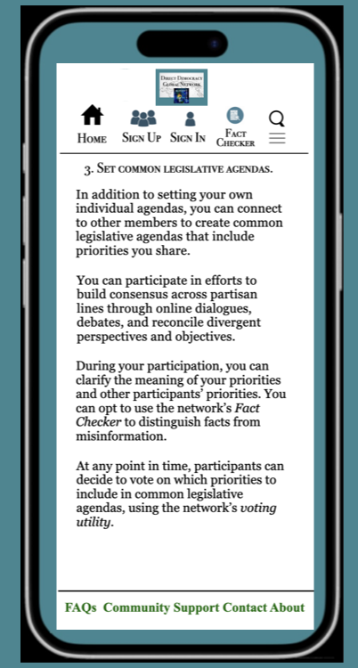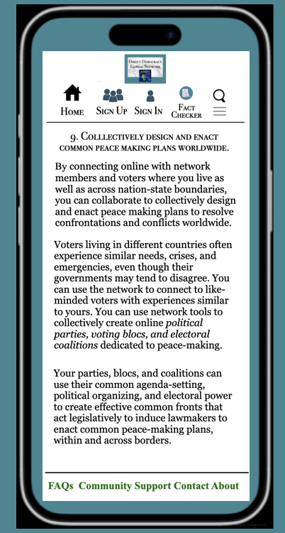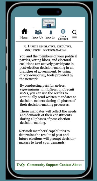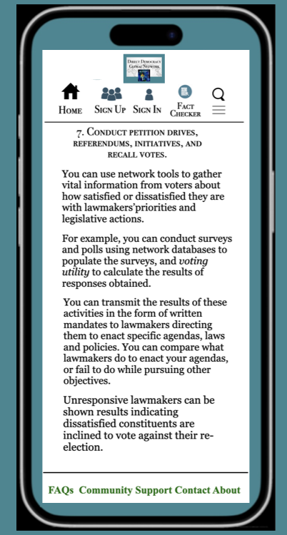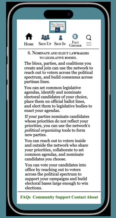 I describe in the Ten Steps section below how voters can navigate the network, and what they can accomplish.